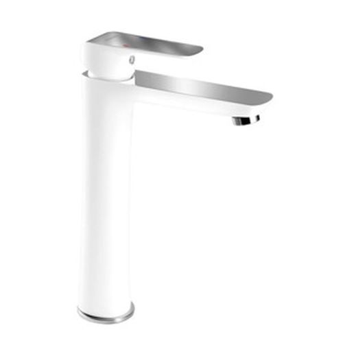 Páková stojánková vysoká umyvadlová baterie bez výpusti. V provedení bílá a chrom. Výška baterie je 26,5 cm.