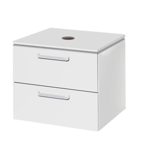 Univerzální skříňka pod umyvadlovou mísu odpovídající rozměrům desky. Provedení bílé boky, bílé čela zásuvek (lesk), horní deska bílá. Zásuvky mají plnovýsuv s dotahem - plynulé dovření. Skříňka je určena pro umyvadla do hmotnosti 15 kg.