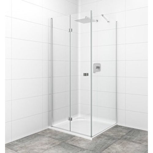 Sprchový kout bez vaničky a barvou profilů v lesklém chromu, výplň je z čirého skla bez dekoru. Produkt je opatřen povrchovou úpravou Easy Clean, která usnadňuje čistění a minimalizuje usazování vodního kamene. Zalamovací systém otevírání. Levá i pravá orientace.