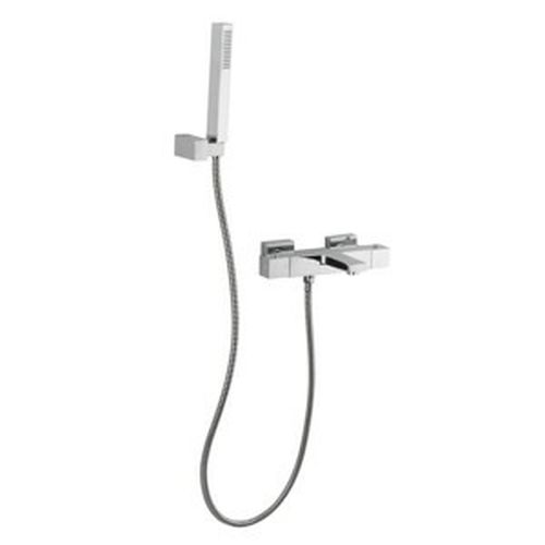 SIKO termostatická nástěnná vanová baterie se sprchovým setem. V hranatém designu. V chromovém provedení. Rozteč baterie 150 mm.