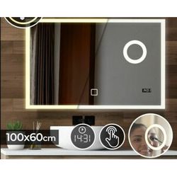 AQUAMARIN LED zrcadlo s kosmetickým zrcátkem, 100 x 60 cm